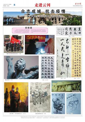 在全国人民众志成城抗击新型冠状病毒肺炎疫情之际,云冈石窟研究院职工积极行动起来,投入到艺术创作之中,以艺术的形式激励广大人民群众坚定信心,打赢疫情防控阻击战。本期《大同日报·走进云冈》刊发的这些作品,就是他们近期创作的部分成果。从这些作品中,我们能够感受到全民动员、共抗疫情的强大力量。