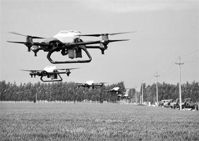 5月7日,在山东青岛平度市蓼兰镇胜利村,植保无人机在进行小麦条锈病防治喷洒作业。近日,山东省全面进入冬小麦抽穗、扬花关键时期,各地农业、农机部门加强田间地头的病虫害防治工作,通过病虫害远程智能监测系统、植保无人机等现代农业技术和设施,全力保障小麦丰收。 新华社发
