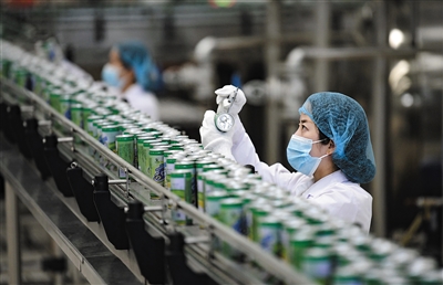 4月11日,内蒙古一家食品公司的技术人员在山杏加工生产线上检查产品质量。