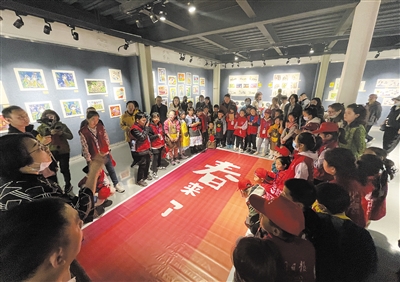 4月10日上午,40名大同日报小记者与40名小画家手拉手,走进开源一号文化园区源美术馆,共同观看“我爱家乡·创建文明城市”主题少儿美术作品展,大家一起手绘“春”字,用行动点亮展览,留住春天的美好记忆。 本报记者 李玉玮摄