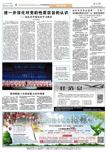 习近平总书记在党史学习教育动员大会上强调,我们党的百年历史,就是一部践行党的初心使命的历史,就是一部党与人民心连心、同呼吸、共命运的历史。要教育引导全党深刻认识党的性质宗旨,坚持一切为了人民、一切依靠人民,始终把人民放在心中最高位置、把人民对美好生活的向往作为奋斗目标,推动改革发展成果更多更公平惠及全体人民,推动共同富裕取得更为明显的实质性进展,把14亿中国人民凝聚成推动中华民族伟大复兴的磅礴力量。扎实开展党史学习教育,就要进一步深化对党的性质宗旨的认识,始终保持马克思主义政党的鲜明本色。