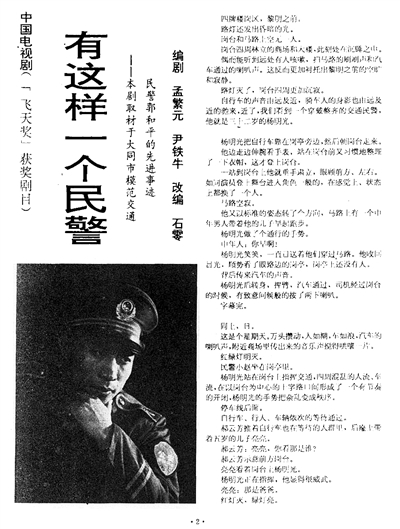 1989年,著名导演张绍林拍摄了一部电视单本剧《有这样一个民警》。该剧根据我市模范交警郭和平同志生前先进事迹改编,在央视播出后引起很大反响,并荣获第十届全国优秀电视剧“飞天奖”单本剧一等奖。 大同市连环画收藏促进会推荐的这部电视单本剧作品,主要讲述了一位执勤民警的桩桩小事:处理初次进城卖豆腐的农家老汉横穿马路违章;搀扶盲人夫妇过马路、送迷路儿童回家;处罚骑自行车载人违章的姑娘;教育违章翻越马路栏杆的小伙子;去新华书店买《雷锋日记》送同事;因公事延误治疗以及临终前请求最后一次上岗等。桩桩平凡,并无惊天动地之举,但经过艺术家质朴无华的精心处理,引出了一位雷锋式的楷模,熔铸成社会主义新人崇高人格的整体。这对于荧屏塑造社会主义新人形象,表现当时那种“有高尚情操、乐于奉献、求实精神的崭新面貌”,无疑提供了具有借鉴意义的经验。 《有这样一个民警》主人公的原型郭和平,1976年参加公安工作,在大同市公安局交警支队一大队历任民警、副大队长。他文明执勤,助人为乐,秉公执法,清正廉洁,用自己的实际行动,在大同人民心目中树起了可亲可敬人民警察的光辉形象,曾荣立三等功1次、二等功1次,多次被评为省先进工作者、特级劳模、省“十佳优秀民警”。1990年4月被公安部追授全国公安战线英雄模范称号。 一位英模就是一面旗帜,一个先进就是一个榜样。郭和平作为上世纪八十年代的交警楷模,用模范行动践行了一名共产党员的初心和誓言,彰显了共产党人的崇高精神和优秀品质。有着对党忠诚、信念坚定、牢记宗旨、心系群众、苦干实干、勇担重任、淡泊名利、甘于奉献的政治品格和精神境界,郭和平的先进事迹永不过时,激励着广大政法干警忠诚履职、为民服务、担当作为。 本报记者 孙露