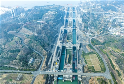 2月21日拍摄的三峡五级船闸全景(无人机照片)。