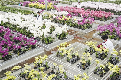 近年来,当地大力推进智慧农业建设,打造花卉数字农业示范园,采用智能控制系统、加热系统、补光系统等先进设备,通过高新技术及管理模式,开展以蝴蝶兰、高山杜鹃为主的盆花工厂化生产。据介绍,各类盆花年产300多万盆,产业带动当地500多名劳动力就业,有效增加群众收入。 新华社记者 范培珅摄