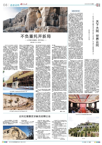 云冈石窟是世界文化遗产,保护好云冈石窟,不仅具有中国意义,而且具有世界意义。历史文化遗产是不可再生、不可替代的宝贵资源,要始终把保护放在第一位。要深入挖掘云冈石窟蕴含的各民族交往交流交融的历史内涵,增强中华民族共同体意识。2021年2月5日,经山西省委同意,云冈研究院“升格”,明确为省政府直属副厅级事业单位,归口省文物局管理,大同市政府负责日常管理。2021年2月19日,云冈研究院正式挂牌。