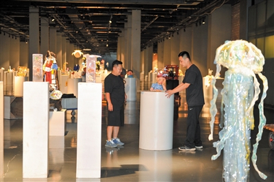 8月6日,市雕塑博物馆内,第五届青少年雕塑作品展览布展人员正在加紧布置灯光、摆放雕塑作品。据了解,2022第五届青少年雕塑作品展览将于8月9日至9月16日在市雕塑博物馆展出。本次展览共收到来自北京、上海、广州、深圳等100多个城市2973位青少年的来稿,报送4866件(组)作品。 本报记者 于宏摄