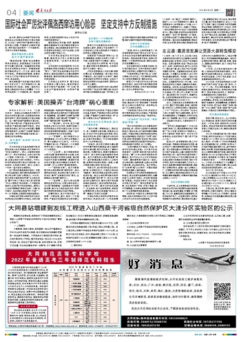 ——“窜访牌”。近年来,美方大幅放宽美台官方交往约束,美国行政部门官员和国会议员多次窜访台湾,双方往来的层级和频率明显提升,突破了美方仅与台保持非官方关系的承诺。