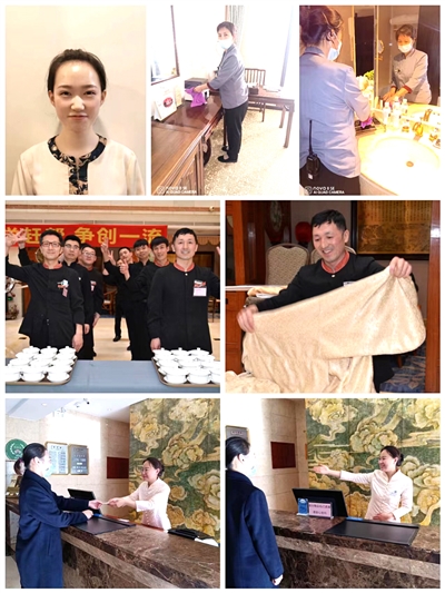 ▶花园大饭店服务人员以微笑迎接每一位嘉宾。 张莉 摄