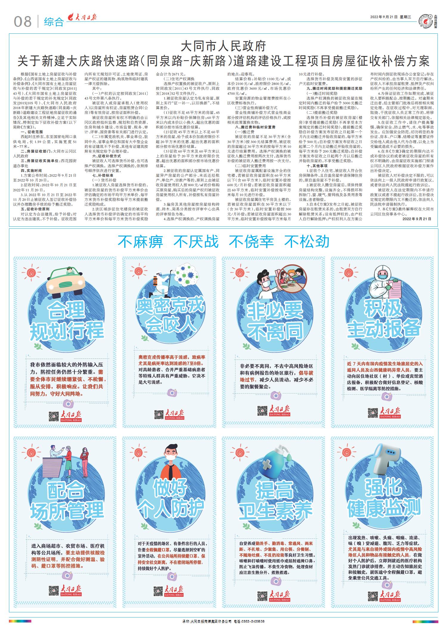 大同市人民政府 关于新建大庆路快速路(同泉路-庆新路)道路建设工程项目房屋征收补偿方案