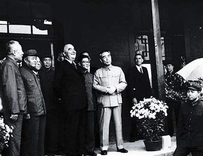 1973年9月15日,周恩来总理陪同法国总统蓬皮杜参观云冈石窟。