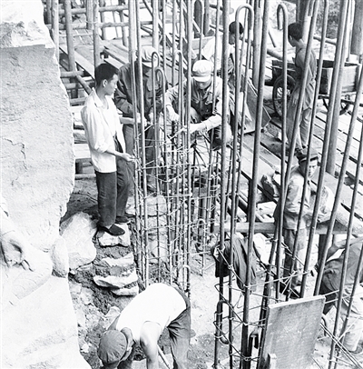 1974—1976年,云冈石窟“三年保护工程”施工现场。