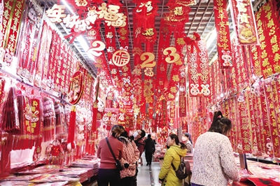 春节临近,各地年货市场红红火火,人们忙着选购年货,喜迎新春佳节。