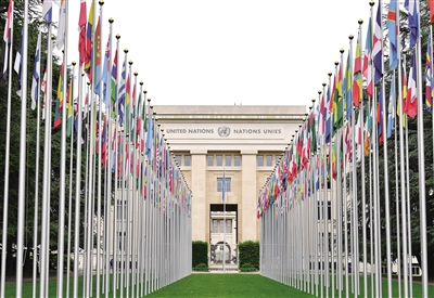 这是5月21日在瑞士日内瓦拍摄的联合国万国宫。