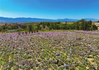 连日来,位于大同市云州区西沙窝村的万亩芍药和牡丹又迎来了盛花期,粉红相间的花朵在阳光下随风摇曳,置身其中,让人心旷神怡,闻讯而来的游人们三五成群点缀其间,拍照留念收获着美好的心情。