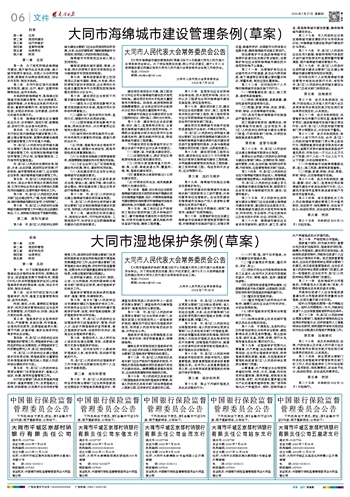 《大同市海绵城市建设管理条例(草案)》拟于8月提请大同市人民代表大会常务委员会审议。为了使法规更加完善,现公开征求意见,请于8月11日前将修改意见和建议告知大同市人民代表大会常务委员会法制工作委员会。