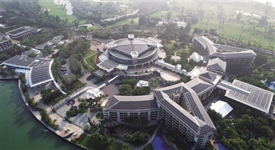 在博鳌近零碳示范区拍摄的博鳌亚洲论坛会议中心及酒店改造项目(3月17日摄,无人机照片)。