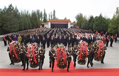 9月30日上午,我市各界向人民英雄敬献花篮仪式在大同市革命烈士陵园隆重举行。 本报记者 张燕伟摄