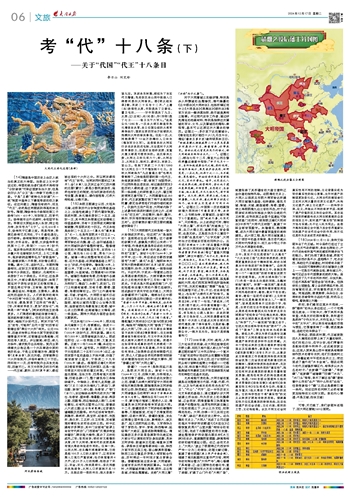 (14)隋唐是中国历史上由汉人统治的真正的大帝国。如我在上文中评说过的,帝国的统治者们虽然不再相信“分封诸侯”可保证国家长治久安,但是依旧认为“分王”是一种御下的得力手段。于是“王爵”便转化为封建“大一统”制度中皇帝之下最高等级的权力象征。在这问题上,隋唐没有例外,而且“代王”,依然是这两朝级别很高的亲王封号。隋朝,隋炀帝长子杨昭的第三子杨侑(605-619年),初封陈王,后晋代王。炀帝晚年出外巡游时,命他留守长安。李渊自太原起兵攻入长安,拥立他为帝,改年号为“义宁”。公元618年3月,炀帝死于江都之变。消息传来,李渊见杨侑已无用处,于5月逼他退位。自行称帝。杨侑被降封为酅国公,闲居长安,次年去世。 唐朝,太宗皇帝李世民第十二子,李简(?—631年)封代王。高宗李治和武则天的长子李弘,在永徽六年也曾被封为代王,上元二年暴卒,高宗破例追赠李弘为“孝敬皇帝”。另,唐德宗第八子李諲,本封缙云郡王,早薨。建中二年,追封代王。宋朝和隋唐相比,在封王方面宽松很多,而且还封有不少异姓王。据统计,北南两宋一共册封了45个异姓王。只不过,这些异姓王中,大部分都是死后追封,体现了朝廷对于异性功臣封王的慎而慎之。开国名将石守信、王审琦、高怀德、曹彬、慕容延钊、李继勋、王景等人,都是在死后追封为王。人们所熟知的南宋“中兴四将”中的三位,即岳飞、韩世忠、刘光世,都是享受了这样的“待遇”。【评:宋朝封异姓王,更加“政治化”,纯粹是一种“待遇”。】两宋的同姓王封得更多。人们熟悉的徽宗赵佶曾为端王,高宗赵构曾为康王。但无论北宋,或是南宋,唯独不分封代王。两宋不设“代王”封号,可能和“五代十国”时后晋石敬瑭出卖“燕云十六州”有关。公元936年,后唐末帝李从珂命太原节度使石敬瑭移镇天平军,石敬瑭遂与桑维翰、刘知远等人谋反。并以割地、称臣、称儿为条件,请求契丹出兵相助。契丹主耶律德光认准这是一个兴兵南进中原的绝好机会,于是立石敬瑭为帝,建国号晋(史称后晋),改元天福。后晋割燕云十六州给契丹,并每年献帛三十万匹。同年闰十一月,后晋和契丹合兵攻克洛阳,后唐灭亡。本文中所涉及的古代地——代王城、蔚州、云州(原平城),都在被出卖的十六州之中。所以两宋都没有“代王”封号。与两宋同时期的辽(契丹)、金(女真),以及宋辽金灭亡后兴建的元朝(蒙古),都是少数民族政权,虽然也有封王的制度,但与汉族政权的名号设置、典章意义、操作规程等,已然大相径庭,从略不表。