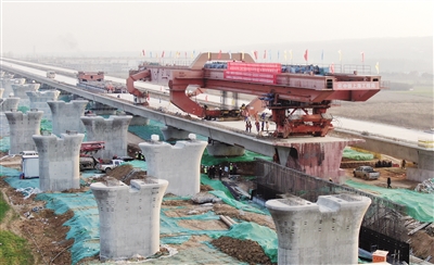 当日,随着架桥机将一孔长24.6米、重563.16吨的箱梁平稳落在浐河特大桥承台上,西十高铁西安方向箱梁架设圆满完成。西十高铁西安方向箱梁于2024年3月开始架设,总长19公里,总计架设箱梁416孔。