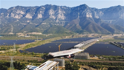 这是8月11日拍摄的河南省济源市沿太行山高速公路跨焦柳铁路立交桥转体施工现场(无人机照片)。