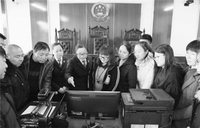 12月4日,广灵县舒惠社区居民在广灵县人民法院“零距离”感受阳光司法。12月4日是国家宪法日。当日,广灵县人民法院开展以“法在我身边”为主题的“法院开放日”活动,敞开大门让公众走进法院,零距离接触法官、了解法院,感受司法的公开和公正,满足人民群众对司法的知情权、参与权和监督权。 霍飞飞摄