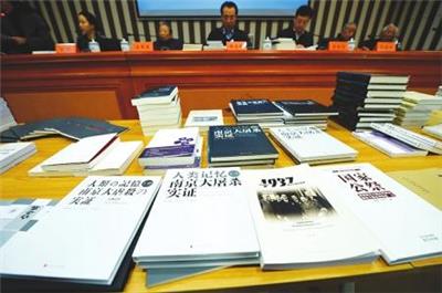 12月5日拍摄的首发式上反映南京大屠杀历史的图书。当日,“以史为鉴警示未来”2017年系列图书首发式在位于江苏省南京市的侵华日军南京大屠杀遇难同胞纪念馆举行。本次活动共有18种20余本反映南京大屠杀历史的图书集中与公众见面,包括学术专著、小说、报告文学、绘本等。新华社发