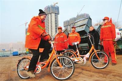 昨日,城区环卫处清运一公司一线装卸工开心地领到了“小黄车”。据了解,城区环卫处为方便一线环卫工工作,特制一批黄色自行车免费发放给一线职工。此次共向一线装卸工发放“小黄车”70辆。 本报记者 孙海钧摄