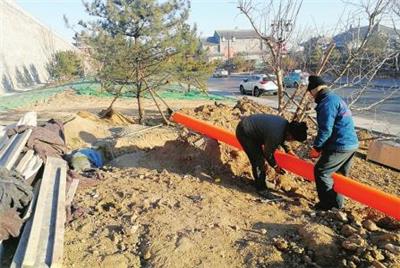 记者近日在大同古城清远门内街看到,几位电力工人正在进行接入电缆作业。据了解,接入的电缆与城墙下方的变电柜对接,为古城灯光工程做准备,使用电更安全更稳定。 本报记者 陈旭东摄