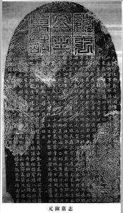 碑额为“魏元公之墓志”,为篆书竖三行六字,风格与司马金龙墓表碑额相近。