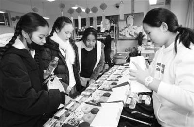 12月29日,在“传统文化庙会——欢乐嘉年华”上,学生们在选购美食。当日,一场以弘扬传统文化为宗旨的“传统文化庙会——欢乐嘉年华”在北京师范大学附属实验中学举办,师生和家长们在浓浓的传统文化氛围中迎接新年。新华社发