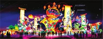 本届灯会的《盛世飞天》灯组,以中华传统卷轴元素为造型基础,融合云冈飞天的艺术特色,展现出古都大同的和谐盛世之景,形成了浓厚的民族风格和鲜明的时代特色。灯组在40米长、8米高的范围内将飞天这一佛教石窟绘塑造像中常见的题材,用更为“中国风”的手法表现出来,生机盎然,潇洒自在。一个个体态婀娜、神情欢快、姿态妩媚的飞天形象仿佛也在和游客共同庆祝这场一年一度的盛会。缤纷绚烂的色彩,装饰性极强的各类花朵造型,使整个灯组化身成为一个散发着迷人芳馨的欢乐世界。张诗珩