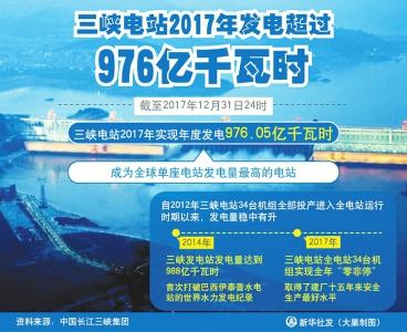 图表:三峡电站2017年发电超过976亿千瓦时 新华社发