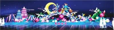 该灯组以长幅画卷的形式展开,中央是惟妙惟肖的牛郎与织女,彩绸捆扎的人物造型衣袂飘飘,神色欢喜,巨大的黄色明月高悬空中,天上楼台亭阁灯火璀璨,地上人间星火点点,LED灯光装饰的漫天星光,再加上优美的配乐,整个灯组完美呈现了古诗《鹊桥仙》描绘的意境,让游客尽情感受一把中国古典爱情的浪漫情怀。 陈杰