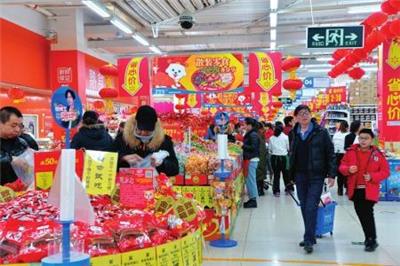 春节临近,消费高峰随之到来。目前我市节日市场商品货源充足,市场供销两旺。图为昨日市民在超市里选购过节物品。本报记者 于宏摄