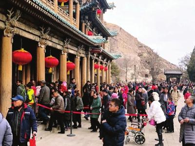 据统计,2月19日正月初四当天,云冈参观人数为21705人,同比增长80.52%;收入同比增长96.60%。春节假期,云冈大景区共接待游客70714人,同比增长52.61%;门票收入同比增长63.90%,均创历史最高水平。
