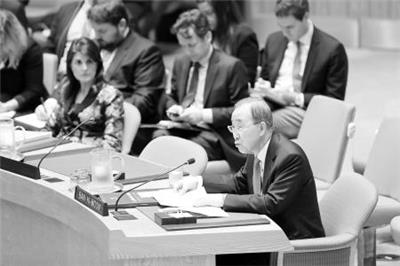 2月21日,在位于美国纽约的联合国总部,联合国前秘书长潘基文在安理会“《联合国宪章》的宗旨与原则在维护世界和平与安全中的作用”公开会上发言。联合国安理会当天举行“《联合国宪章》的宗旨与原则在维护世界和平与安全中的作用”公开会。2015年以来,安理会共召开3次以《联合国宪章》为主题的会议。 新华社发