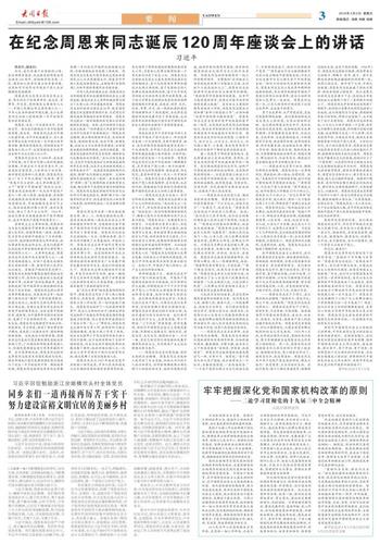 中共中央举行纪念周恩来同志诞辰120周年座谈会