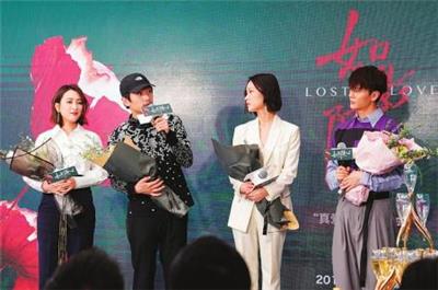 3月28日,电影《如影随心》在上海举行发布会,该片由霍建起导演,陈晓等主演,将于5月在全国上映。图为演员陈晓(左二)与其他主创出席发布会。 新华社发