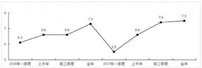 2017年全市地区生产总值增速逐季加快、一季好于一季,三季度达到5.8%,四季度达到6.5%,全年完成1121.8亿元,增速排名由全省第10位上升到第7位。
