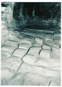文中称,在这个洞窟的前庭、前室与后室经过考古发掘的基岩地面全部保留着如何分割或揭取岩石的大量信息。后室东侧基岩遗迹,反映了石窟工程技术中岩石分割与揭取的过程。在东西宽约5.90米、南北长约8.35米范围内,由东至西分别凿有纵向沟槽6条,将岩石面分割5条南北向长方形条石;再由北至南又分别凿有横向沟槽6—8条,将每条纵向沟槽分割的岩石面又分成5至7个规格不同的石块,石块大小不等,根据需求来确定。洞窟的内外其他岩石表面也布满分割或揭取岩石的考古遗迹。很显然,这种岩石分割方式适应规模较大的大型洞窟岩石开采,分割岩石是石窟工程开凿程序的需要,也是想让开凿的洞窟岩石能够迅速采集出来首先要进行的步骤。这应是石窟工程的洞窟开凿程序岩石第一项工作。