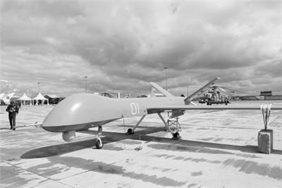 这是5月23日在哈萨克斯坦阿斯塔纳拍摄的哈萨克斯坦防务展上的中国产无人机。