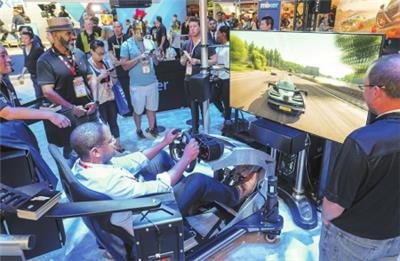 6月12日,在美国洛杉矶,人们在E3电子娱乐展上体验游戏。 2018年度E3电子娱乐展12日在洛杉矶正式拉开帷幕。E3电子娱乐展是全球规模最大、最受关注的电子娱乐展之一。 新华社发