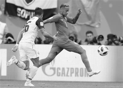 6月22日,在圣彼得堡进行的2018俄罗斯世界杯足球赛E组小组赛中,巴西队以2比0战胜哥斯达黎加队。图为巴西队球员内马尔(右)在比赛中带球突破。 新华社发