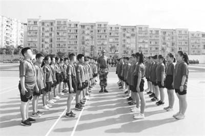8月27日,在贵州省仁怀市实验小学,学生在校园内参加军训。开学在即,各地组织学生通过军事训练磨炼意志、强健体魄,培养纪律意识和团队精神,以崭新面貌迎接新学期。 新华社发