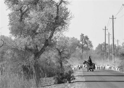 在新疆尉犁县喀尔曲尕乡,牧羊人马木提·买买提在胡杨边上的道路上牧羊。10月中下旬,静静的塔里木河中下游一片金黄。胡杨深处,条条小路蜿蜒绵长通向远方,引人入胜。塔里木河是中国最长的内陆河,这一区域原始胡杨林分布较为集中。随着塔里木河连续19次向下游生态输水,为胡杨林“解渴”,塔河两岸生态得到明显改善,沙地面积逐年减少。 新华社发