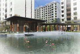简雅之美,是新中式风格最典型的特点。在碧水云天·御花园,没有繁复的雕饰,没有富丽堂皇的色彩,规划设计者最想实现的是在社区里呈现浓浓的艺术氛围,大到建筑造型、建筑的色调,小到一个垃圾桶、长椅、路牌,无一处不体现匠心,无一处不彰显艺术品位。比如,楼体外墙部分采用高楼墙砖,部分采用高级石漆和石材,还嵌一条金属镶线、铜质装饰板,给建筑增添了现代派的格调。