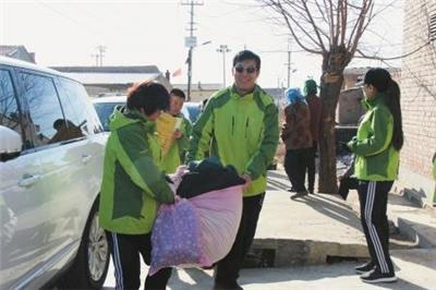 11月18日,由明堂周边部分党员牵头组建的云中健步队的30多位代表带着78位队友捐献的7400元和200多件衣服,驱车来到阳高县狮子屯乡潘屯村慰问贫困户。这是他们听到在该村扶贫帮扶的同志介绍情况后,由队中党员组织发起的又一次公益活动。图为队员们把捐献的款物送到潘屯村。