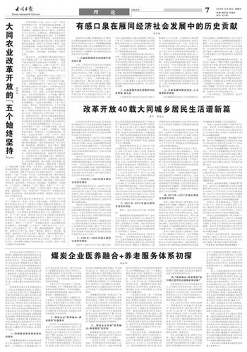 口泉留给我印象最深的是:南北两山、中间一河青山绿水的如画环境;两山上南财寺、华严寺里“影堂香火长相续,应得人来礼拜多”的虔诚人群;北岸边火车司机驾着三十多节装满乌金的车皮微笑着向人们招手致意的自豪情怀;口泉街东头剧院前矿工和家眷们等待看戏的谈笑风生;逢年过节前矿工家属、周边村民们熙熙攘攘地在新建的东街大百货商场里面对琳琅满目的商品买了还想再买的喜悦情景……抚今追昔,我深为故乡——口泉,骄傲!口泉,你为人们的生活安康、雁同经济社会发展作出了巨大的历史贡献!