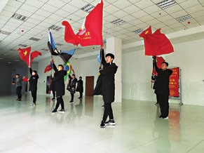 据悉,启动仪式分为入场仪式和文艺演出两部分。在文艺演出部分中,有一个篇章主要体现大同在北魏时期的辉煌成就,重点突出胡服骑射、云冈石窟、长城等历史文化。大同艺校50名师生参演其中,主要以战鼓、战旗、长矛、弓箭作为表演形式。为此,该校特别抽调戏曲、舞蹈、影视表演、音乐等专业的师生进行排练。记者在排练现场看到,虽是数九寒冬,参演的师生却是大汗淋漓,从北京前来的编导老师们认真地辅导着每一个动作,精细到每一处细节上。舞动战旗,从最开始的参差不齐,到最后的步调一致,其中辛苦,难以言表。挥舞长矛,由于来自不同的专业,许多学生在排练期间表现出吃力、无节奏感,但是他们努力克服自身不足,把这些难做的动作,重复练了百遍,只为达到协调一致。