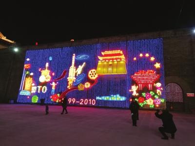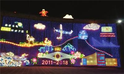 南城墙关城内梧桐苑的启迪科技灯组《改革开放四十年》将40年时代变迁过程及改革开放成果一一展现,可谓移步异景,让人们享受视觉盛宴的同时还有满满回忆。